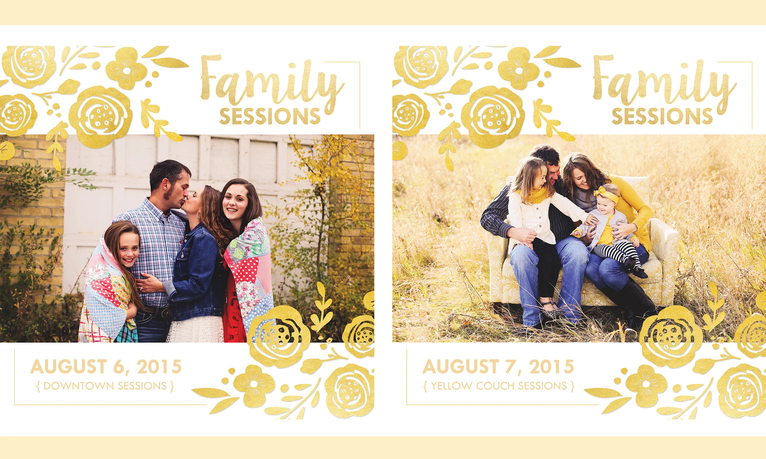 In addition, we’ll be offering a full weekend of Family Sessions – FOUR days! Four setups/locations! And { full copyright } of three images from the final gallery is included! Each day will feature a specific theme – pile up on our yellow couch, in front of an urban backdrop, in a golden field or cuddle up on a cozy bed at sunset!
